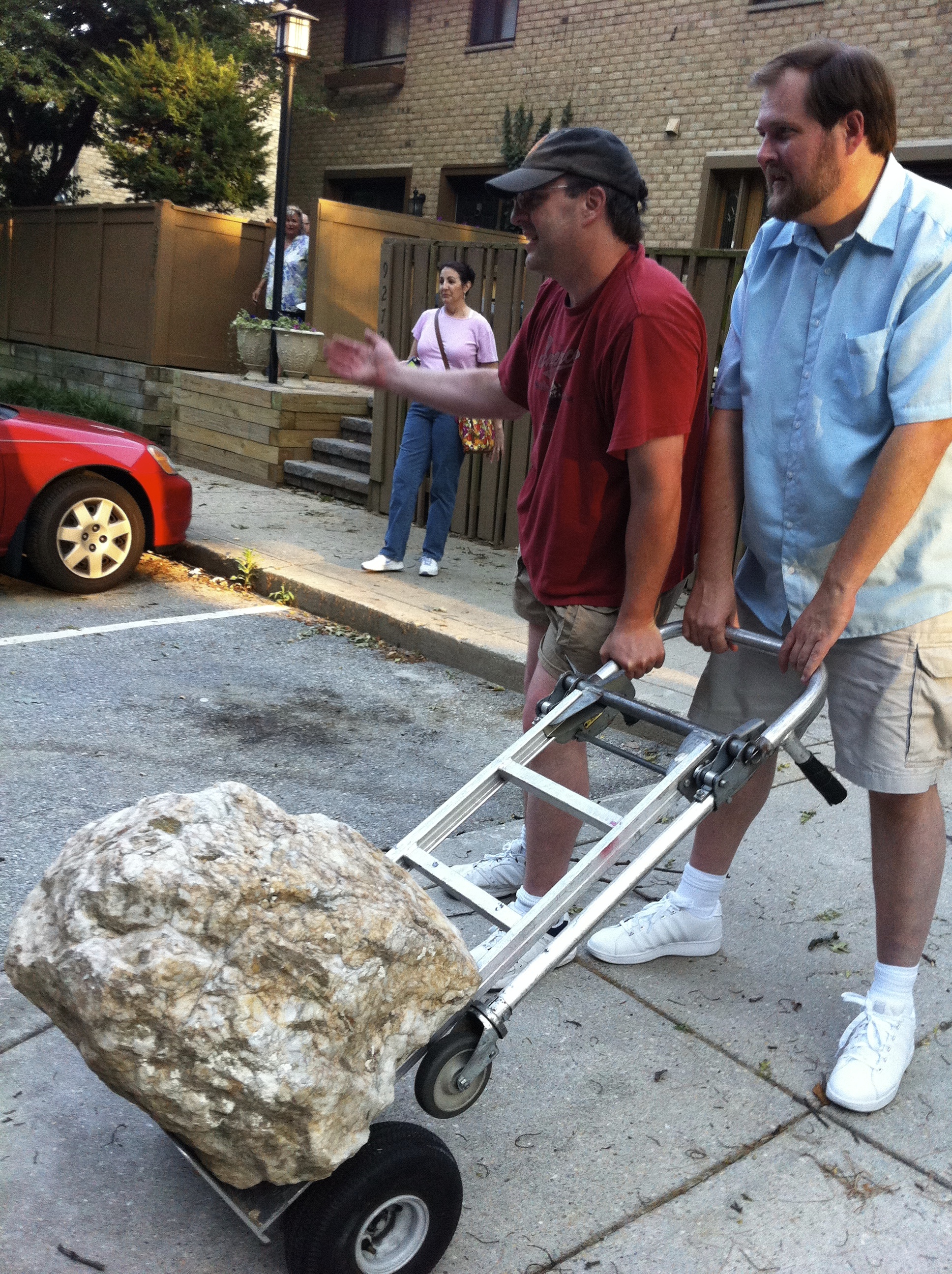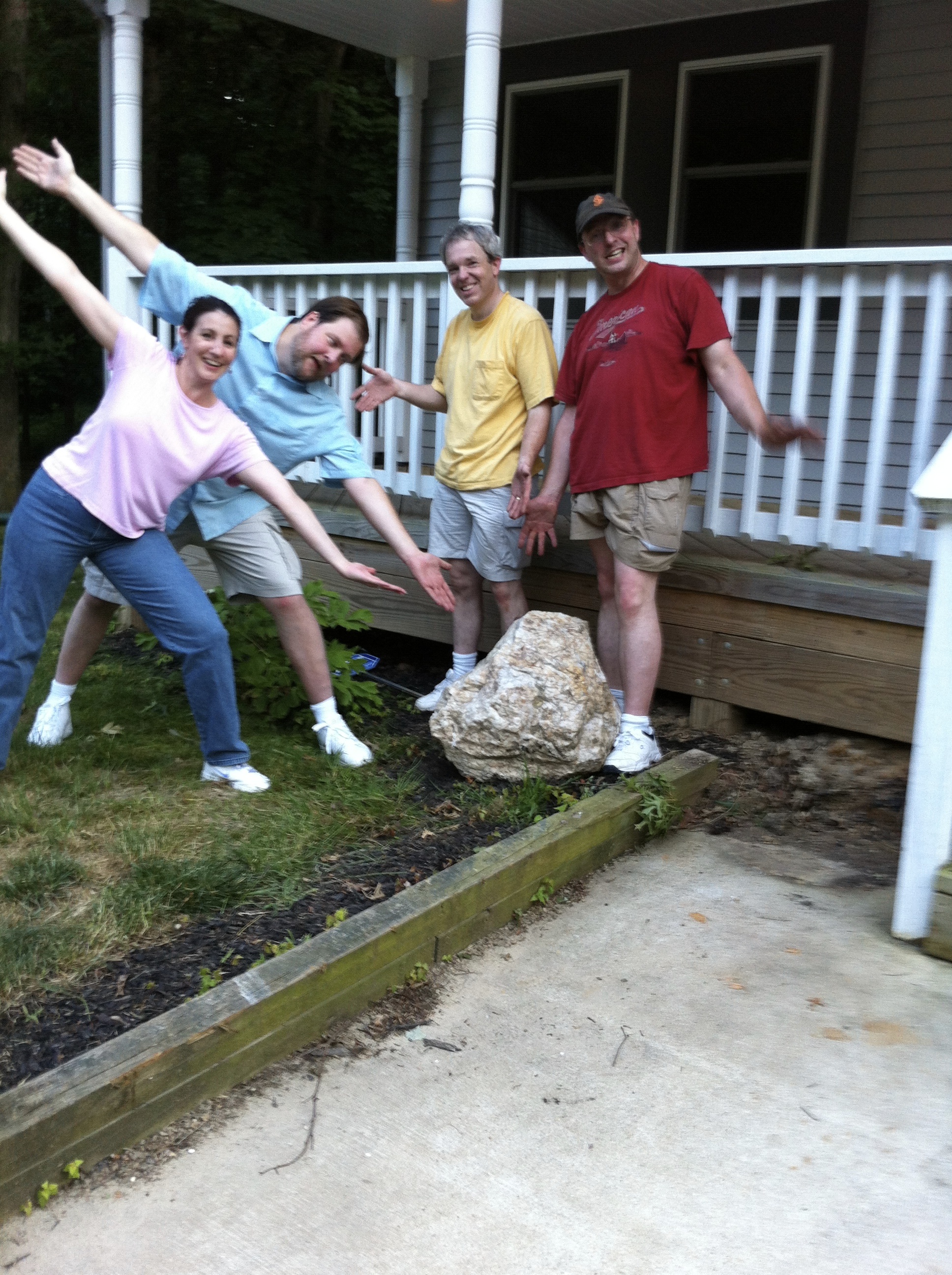 Jerry fell in love with The Rock. So did Earl, Paul, and Greg. Julie was a baby at the time, unimpressed by The Rock. Jerry and the boys decided The Rock had to become a part of our townhouse’s landscape. They set out to move The Rock.
