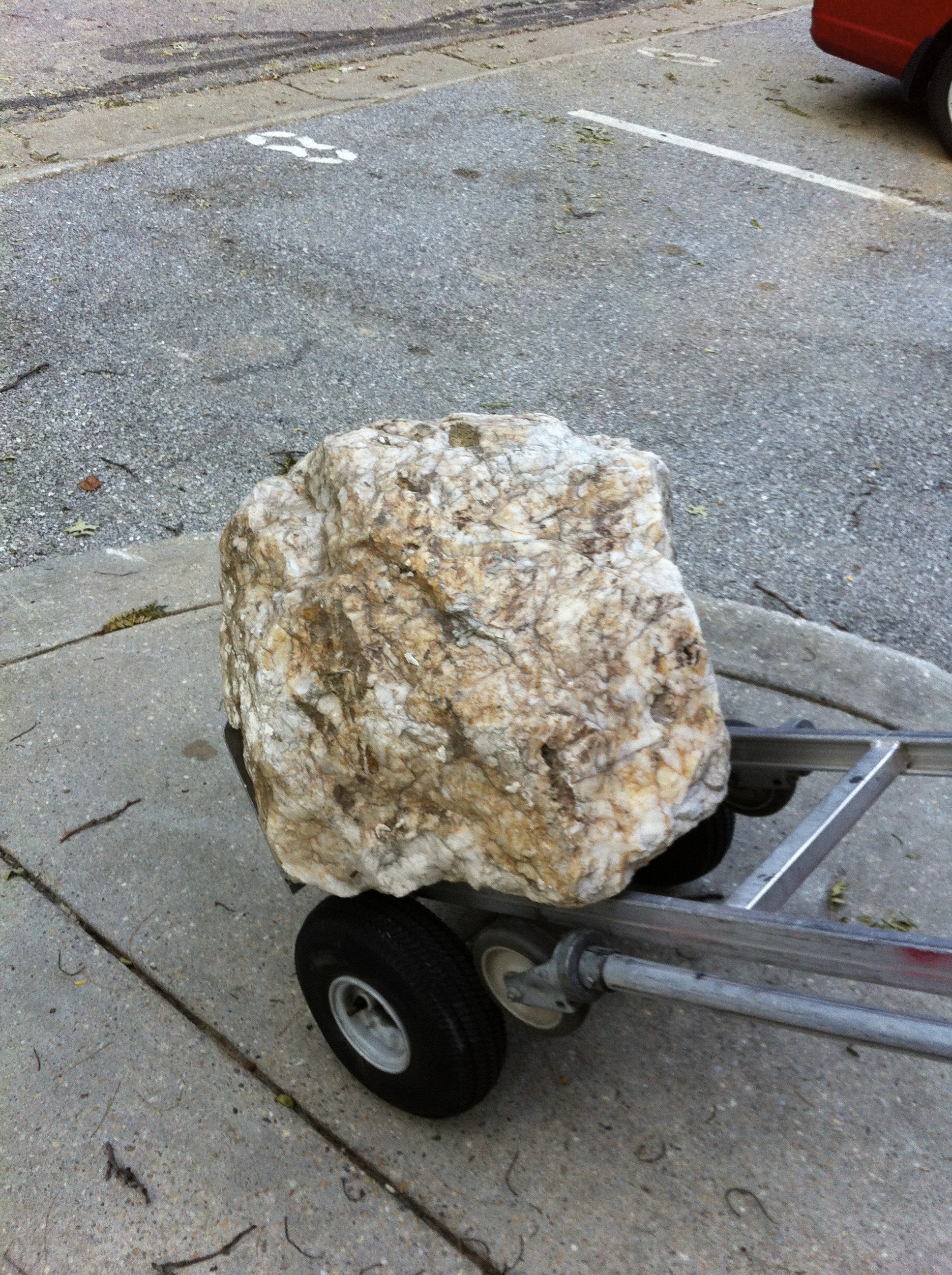 Then came the moving process. I had planned to use the services of a local stone company. Greg wasn’t having any of that. Now that he owned The Rock, it had to be in front of his house. Now! That Day!